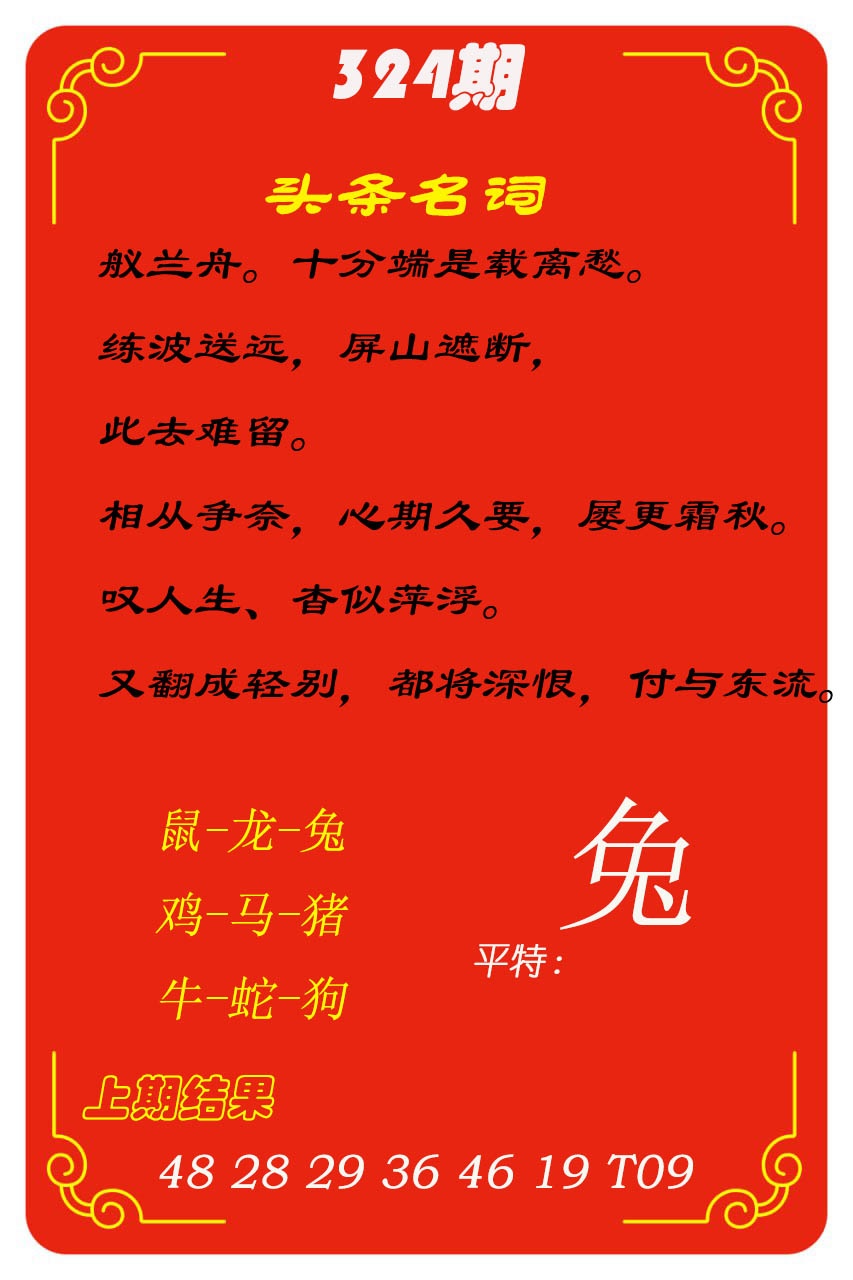 高手帖 323期:不问风月★【⑩码中特】★正版资料 不问风月