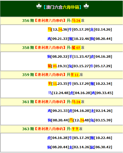 361期:【龙鼠兔虎牛狗羊】开:马12