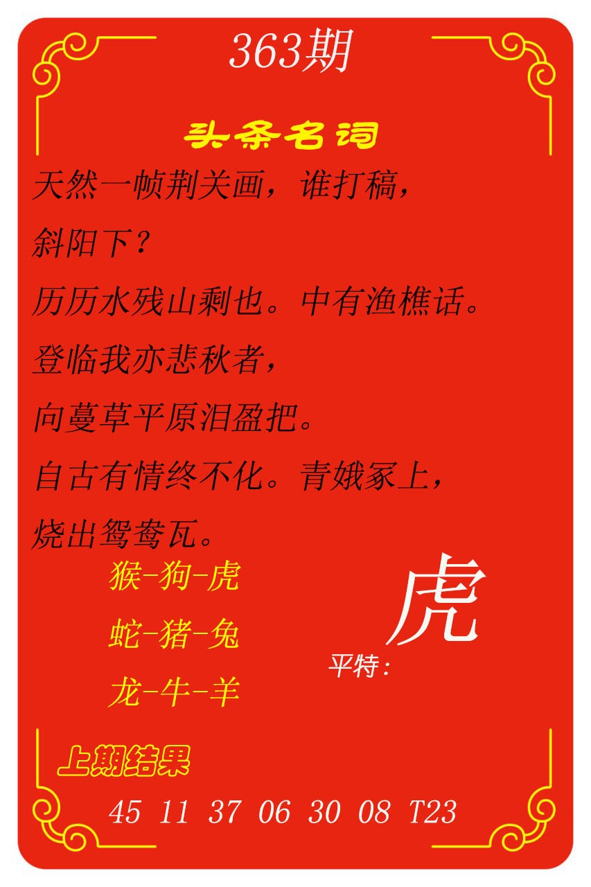 高手帖 362期:不问风月★【⑩码中特】★正版资料 不问风月