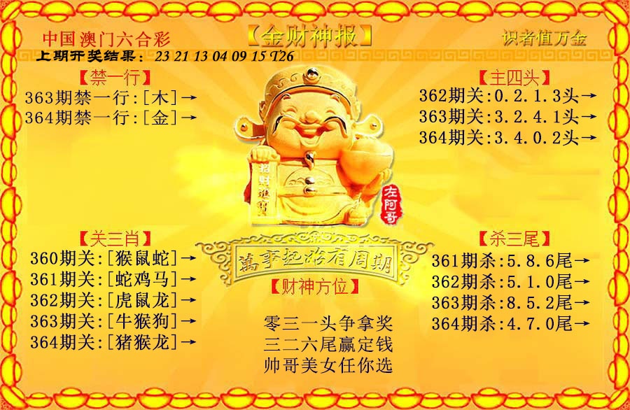 推荐帖 364期:金牌福星★【绝杀①肖】★更新中奖 金牌福星
